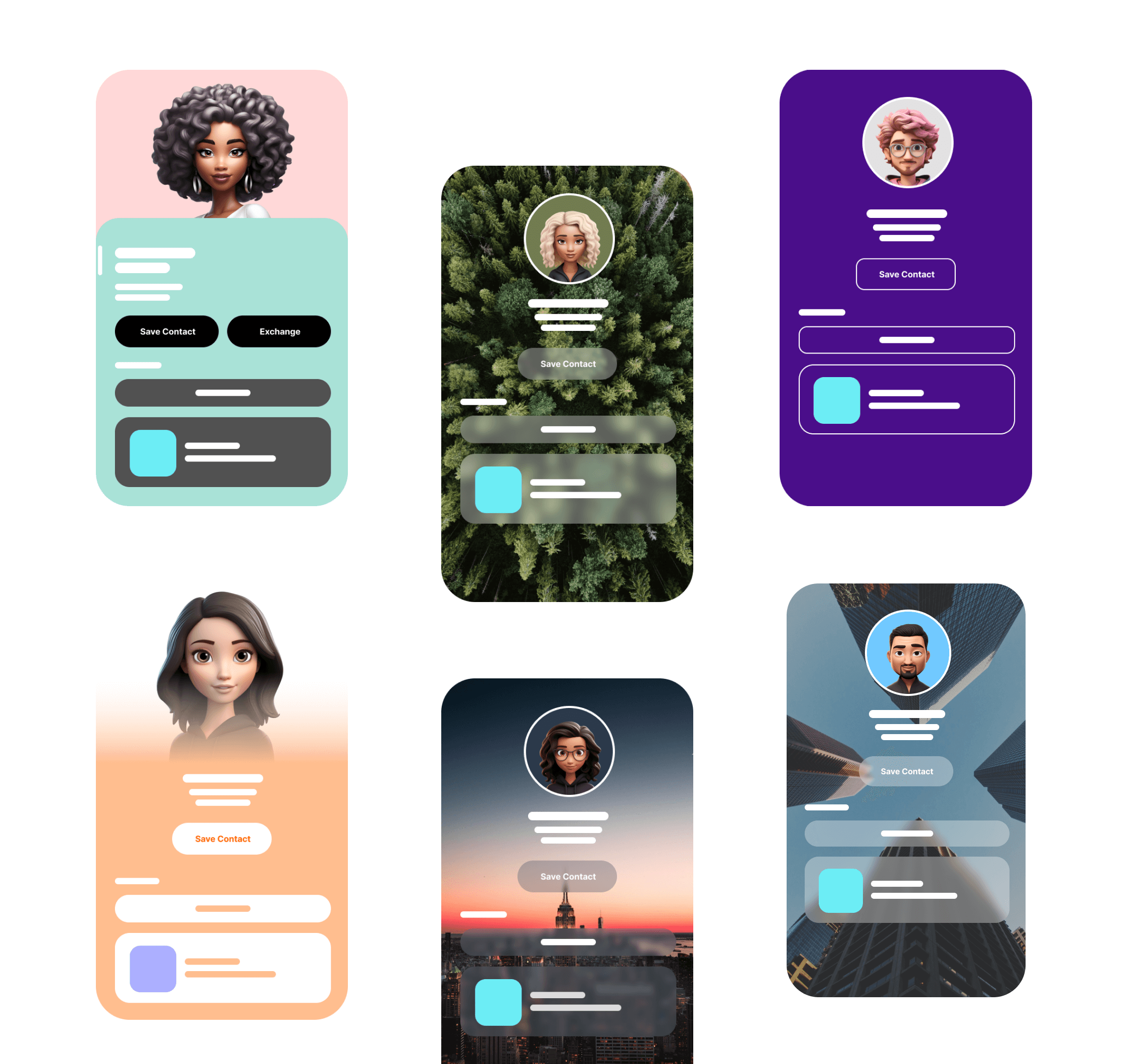 Next to your "Save Contact" button, you'll find an "Exchange" button. When someone clicks on it, a contact exchange form will appear with fields for their name, job title, company, phone number, and email. They can quickly fill out the form using their browser's auto-fill, allowing them to share their contact details with you in seconds.
